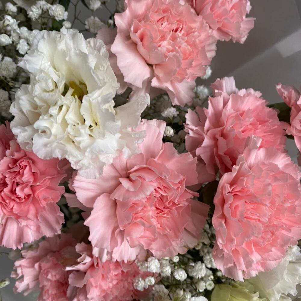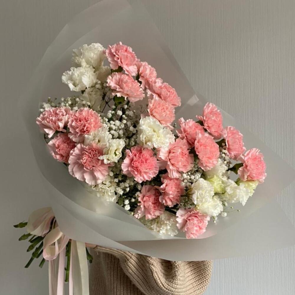 Гвоздика – 19 шт.эустома белая – 5 шт.