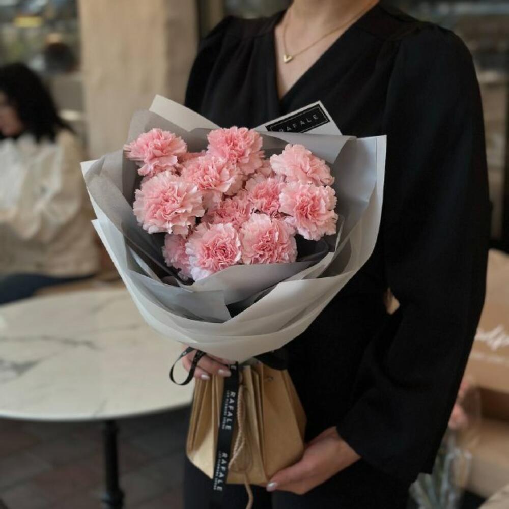 Букет "MONO 30.0" состоит из 15 голландских гвоздик в оформлении. Народные легенды Англии рассказывают о гвоздике, как о символе любви и чистоты. Выбрав букет от RAFALE, Вы скрасите день обладательницы букета и подарите ей незабываемые эмоции.