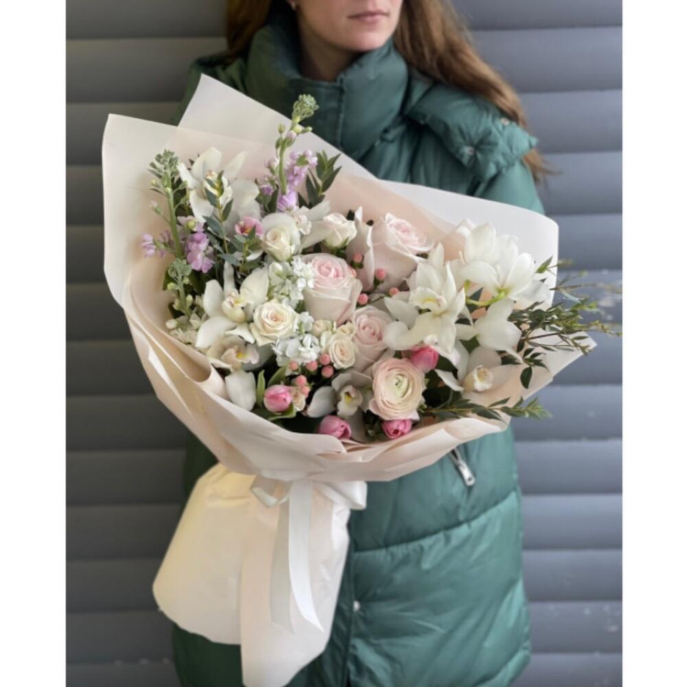 Гвоздики, Кустовые розы, Лизиантусы, Пионовидные розы, Розы