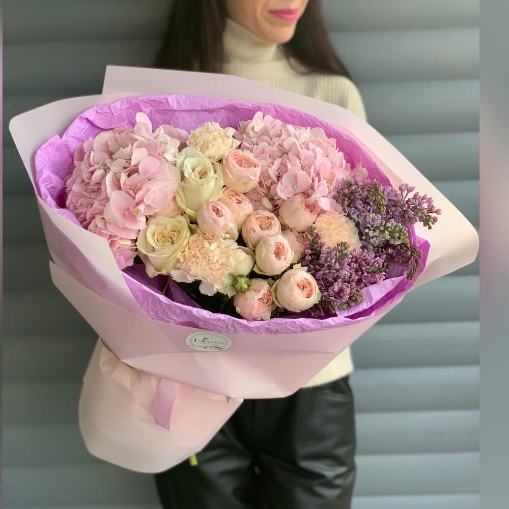 Альстромерии, Кустовые розы, Лизиантусы, Пионовидные розы, Розы, Ромашки