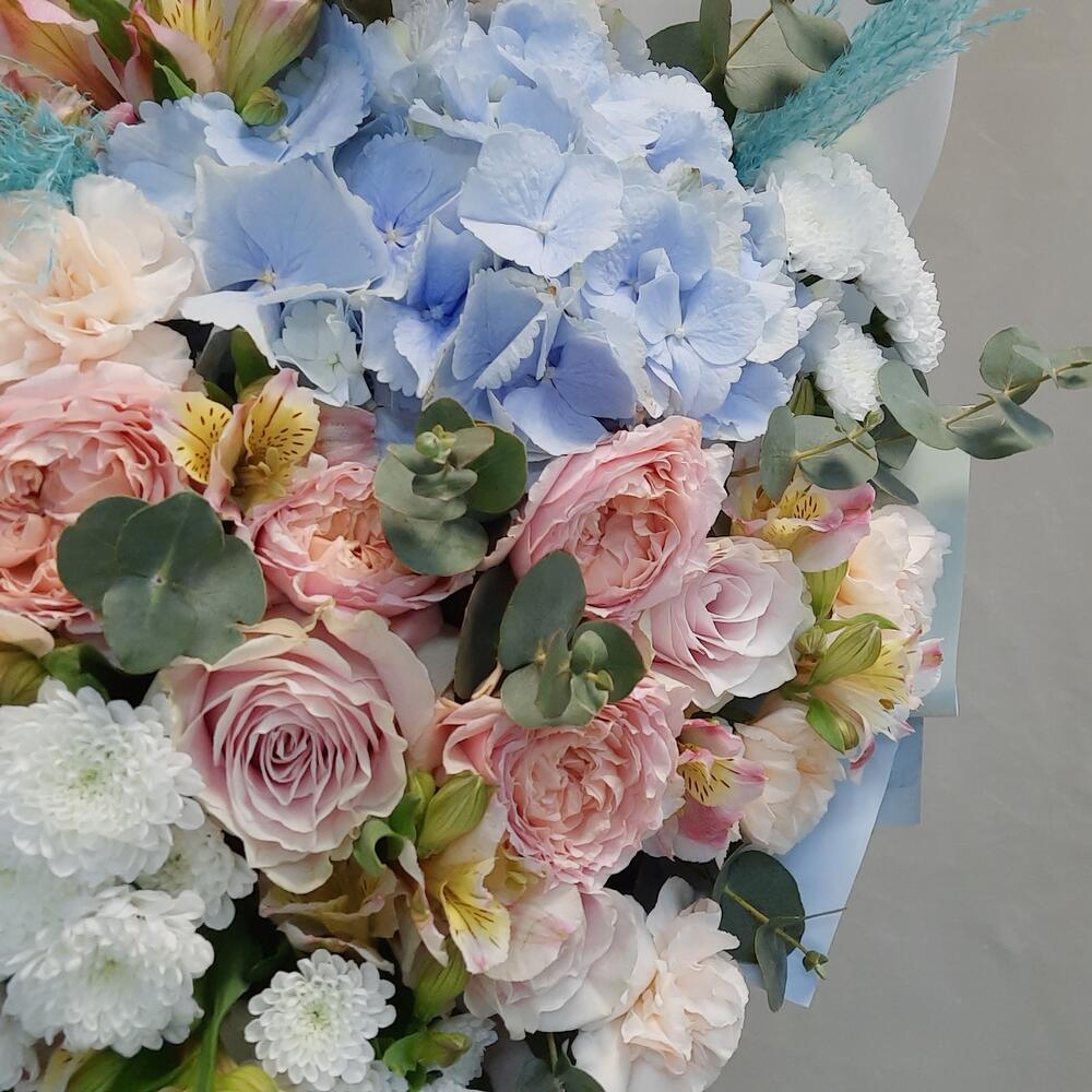 Категорий: Альстромерии, Гвоздики, Гортензии, Кустовые розы, Пионовидные розы, Розы