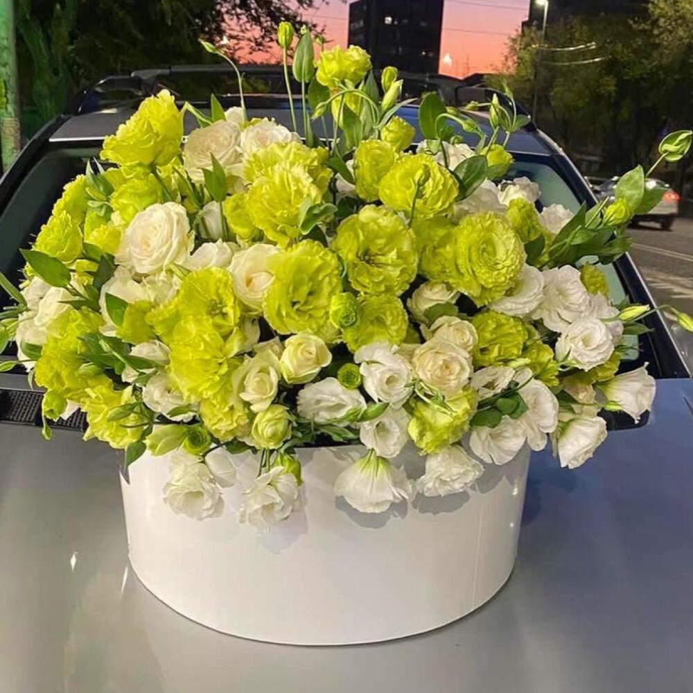 Альстромерии, Гортензии, Кустовые розы, Лизиантусы, Розы, Хризантемы