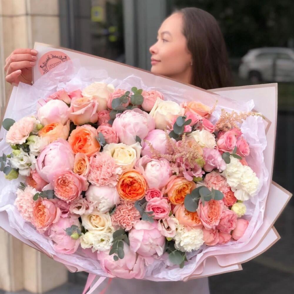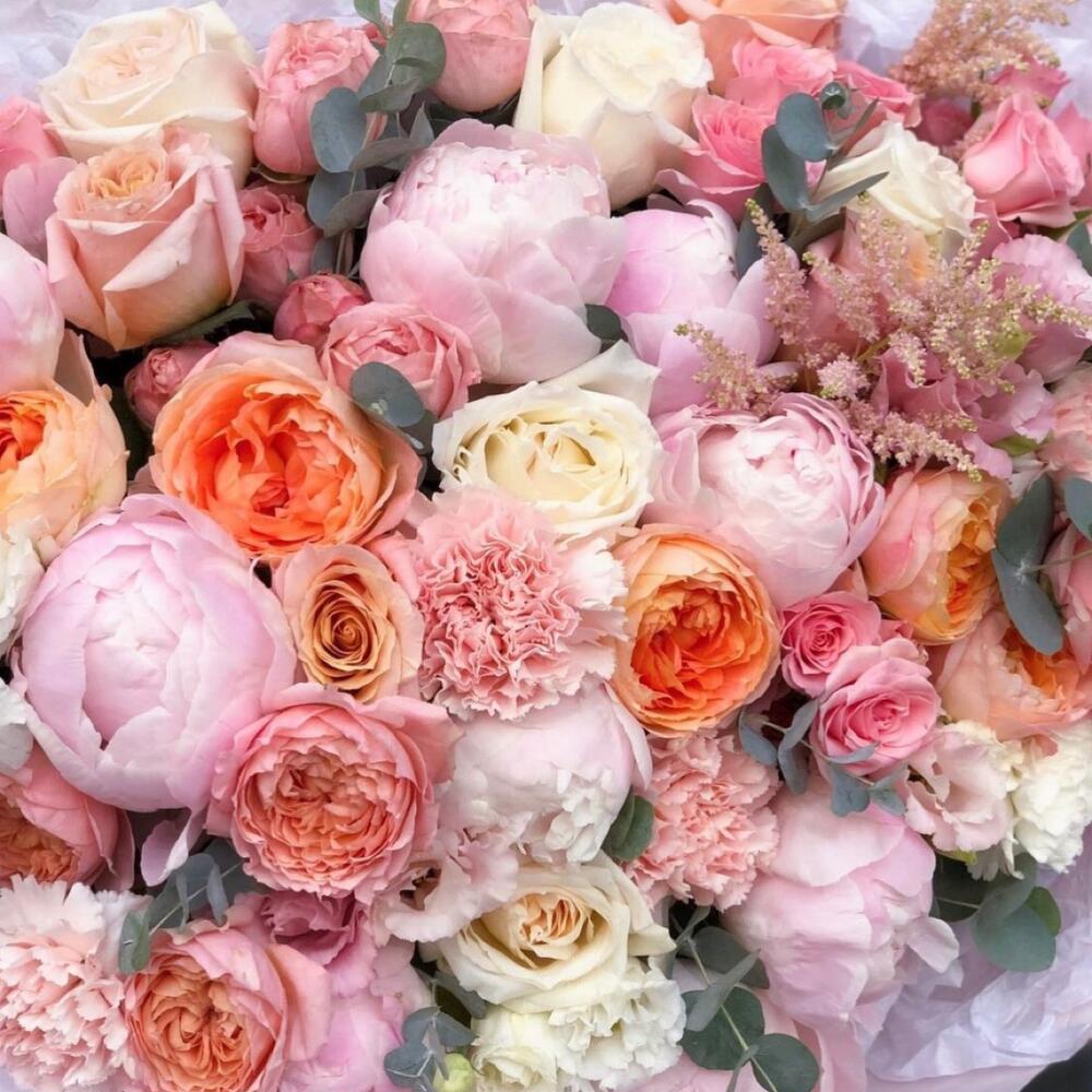 Гвоздики, Кустовые розы, Лизиантусы, Пионовидные розы, Розы