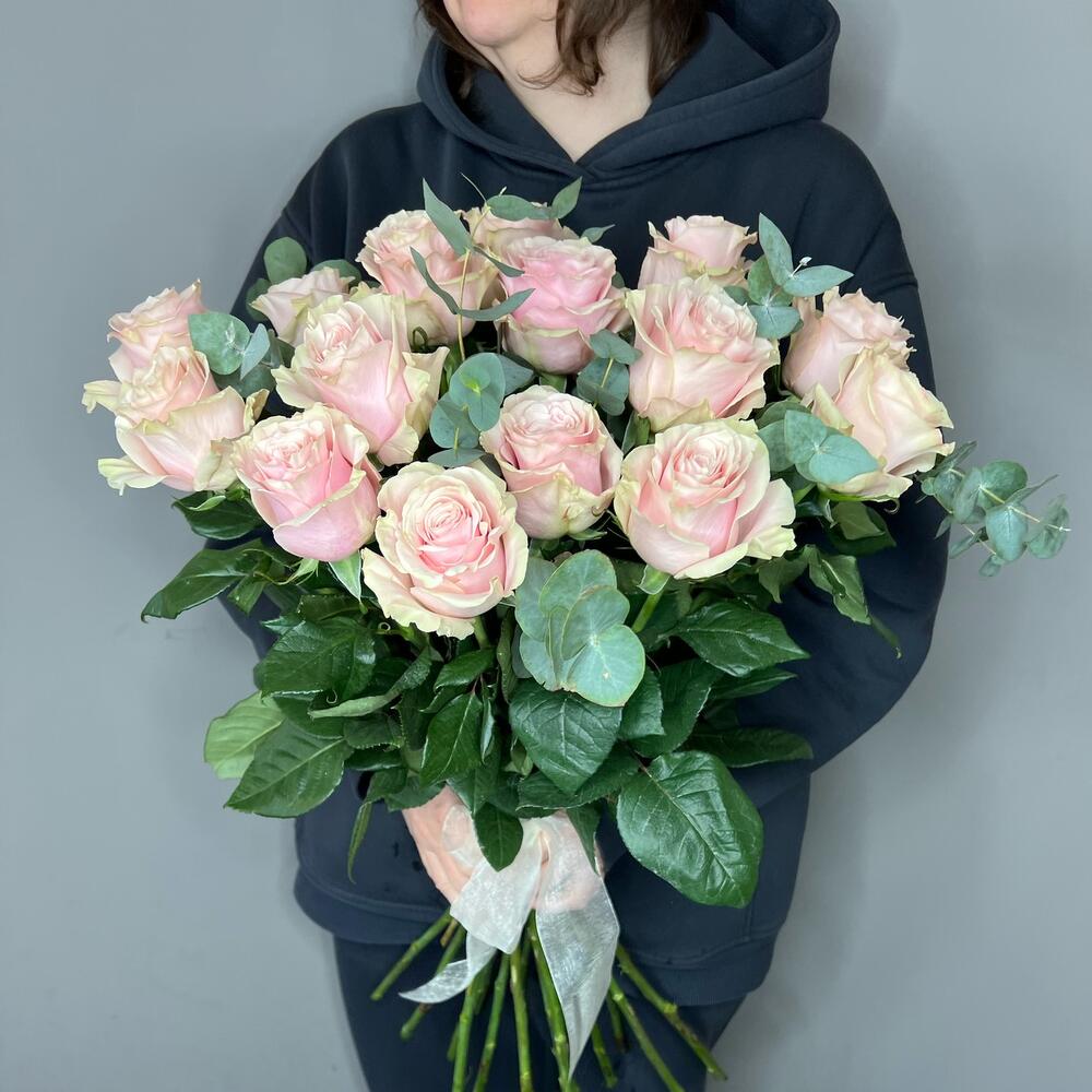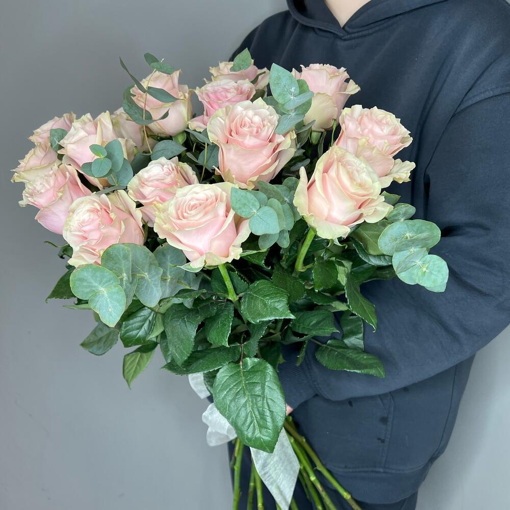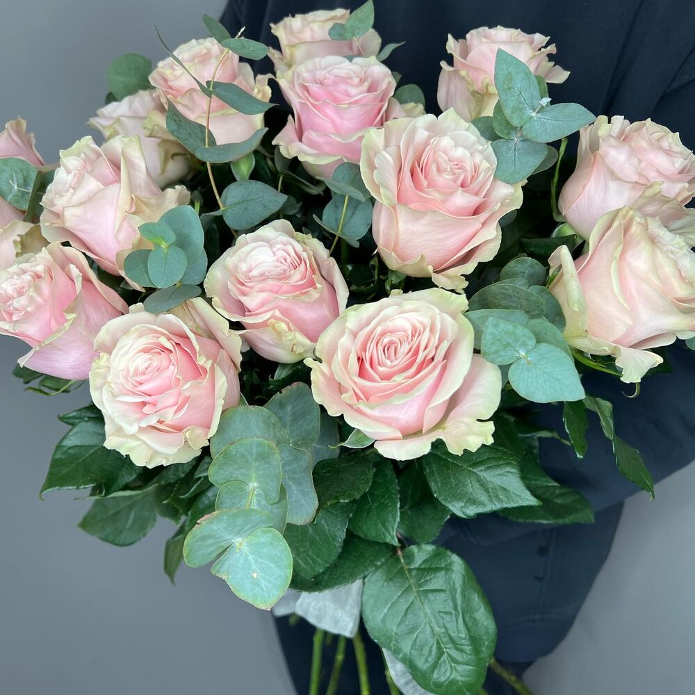Эвкалипт – 2 шт.Роза одноголовая – 15 шт.комплимент от polyanka – 1 шт.