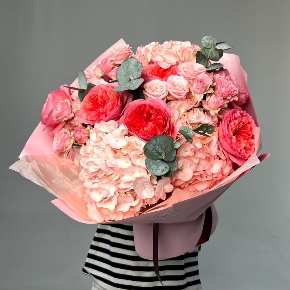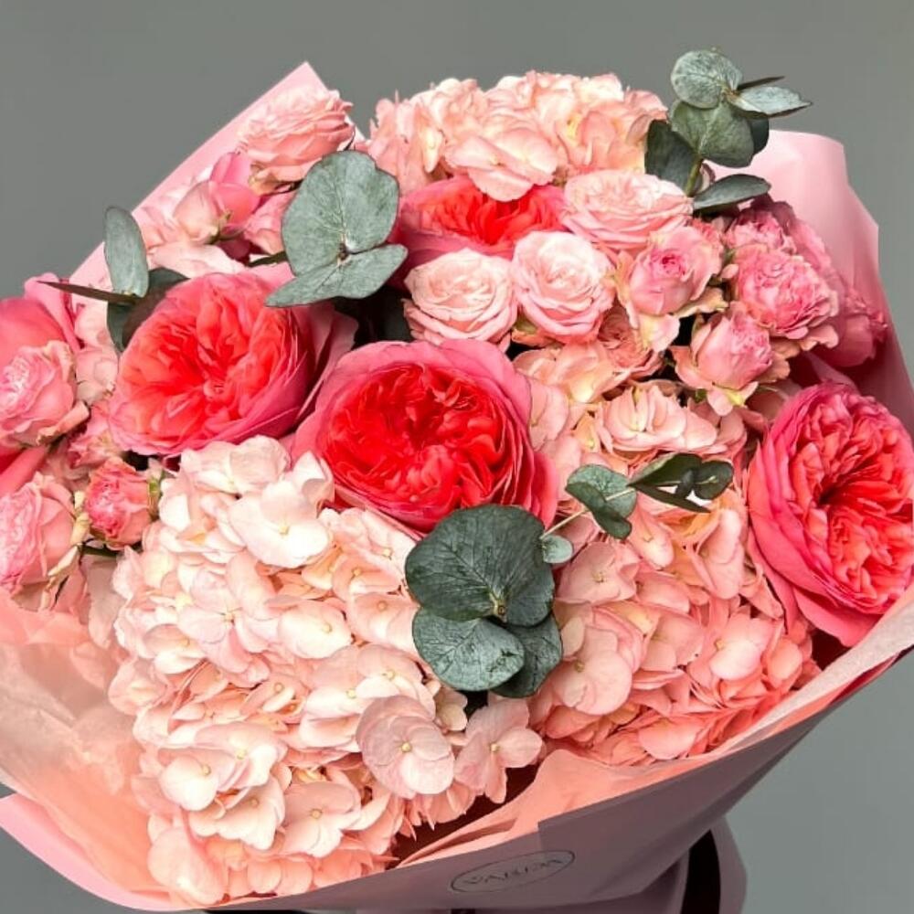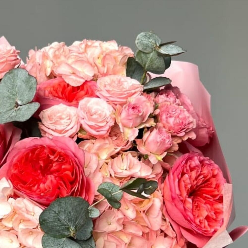 Гвоздики, Кустовые розы, Лизиантусы, Пионовидные розы, Розы