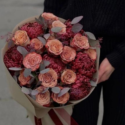 Евро-Букет из Гортензии ,Розовых Роз,Лизиантусов и Эвкалипта + открытка ручной работы в подарок